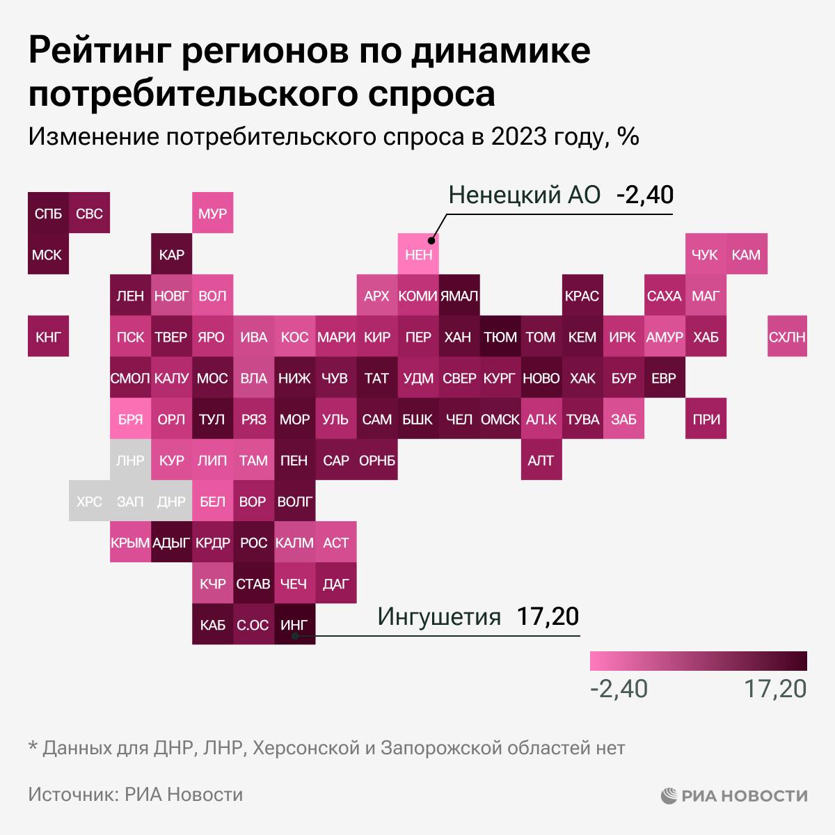 Республика Марий Эл заняла 56 место в рейтинге регионов России по динамике потребительского спроса от РИА Новости.
