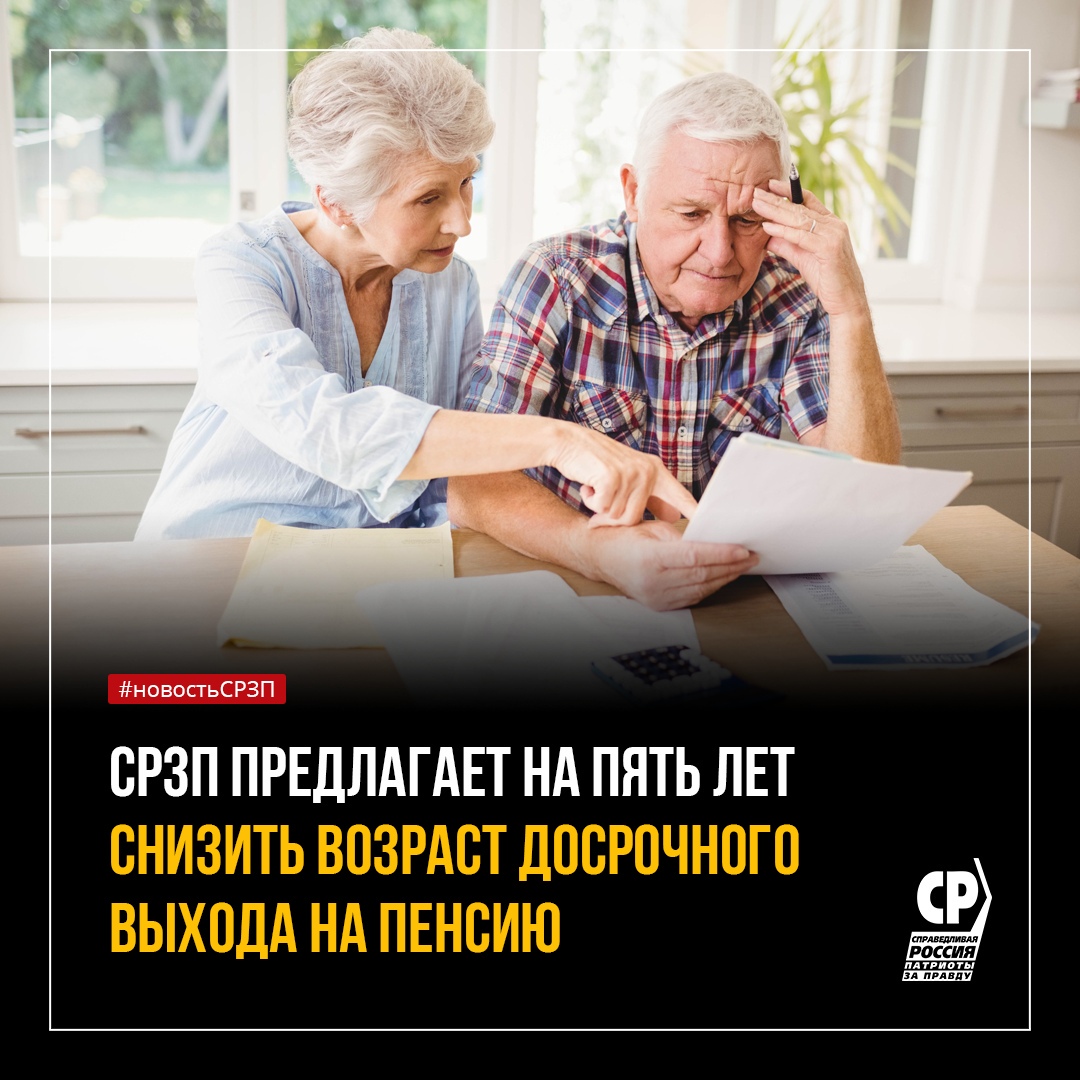 Недавно на уровне руководства страны была поддержана инициатива партии СПРАВЕДЛИВАЯ РОССИЯ – ЗА ПРАВДУ об индексации пенсий работающим пенсионерам. Мы предлагаем следующим шагом на пять лет снизить возраст досрочного выхода на пенсию: