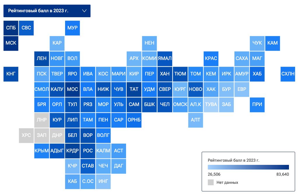 В прошлом году рейтинговый балл нашей республики составил 49,580, хотя в 2022 году был 47,145. К слову, в 2022 году Марий Эл находилась на 55 месте.