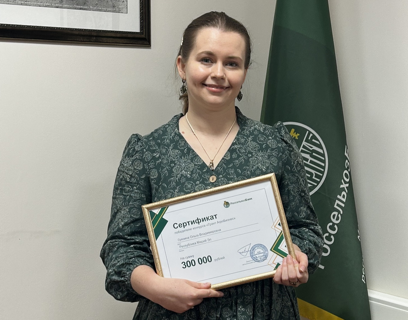 В Марийском филиале РСХБ состоялась церемония вручения гранта выпускнице образовательного проекта «Школа фермера», победителю конкурса «Грант АгроБизнес» Ольге Грязиной,