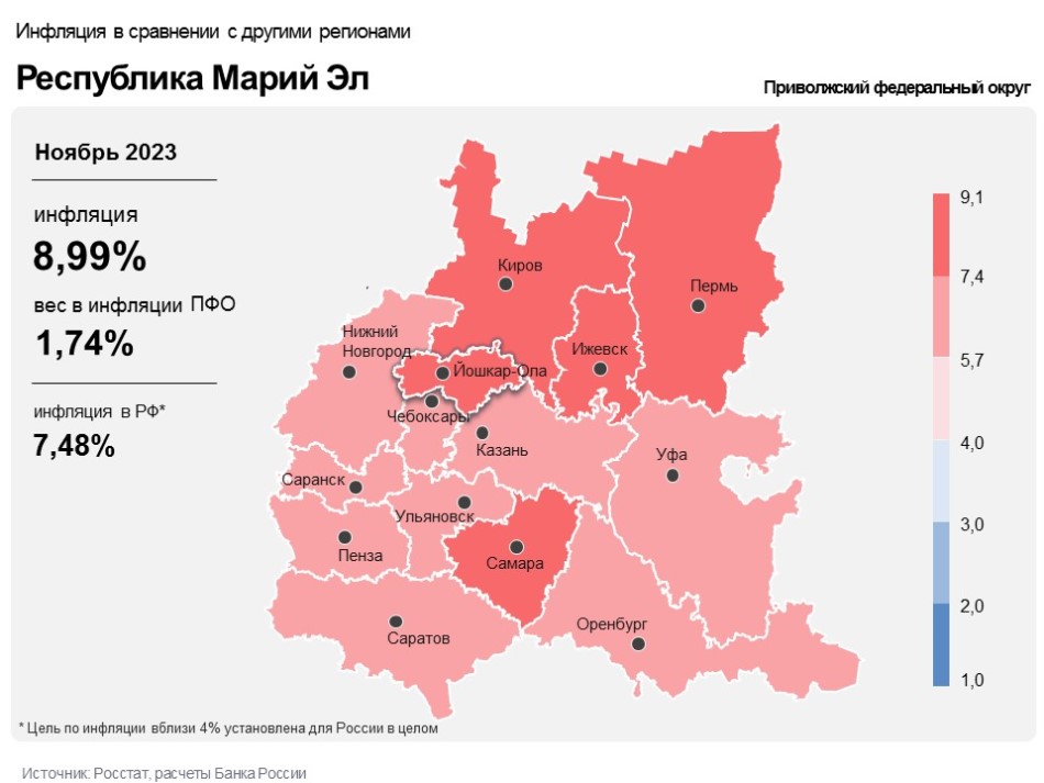 В ноябре инфляция в Марий Э ускорилась до 8,99%