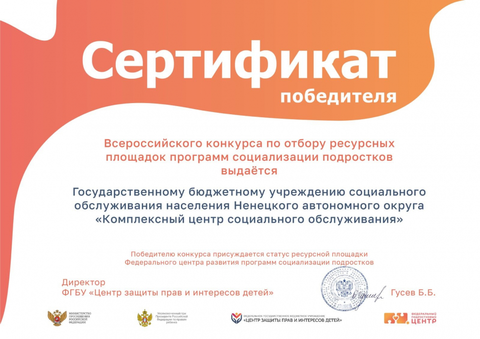 По инициативе детского омбудсмена НАО Комплексный Центр социального обслуживания округа принял участие и победил во Всероссийском конкурсе