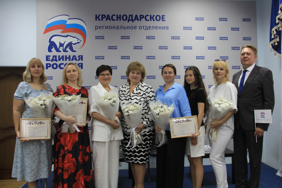 В преддверии праздника Дня семьи, любви и верности в Региональной общественной приемной Председателя Партии «ЕДИНАЯ РОССИЯ» Д.А. МЕДВЕДЕВА состоялась торжественная встреча Уполномоченного по правам ребенка в Краснодарском крае Т.Ф. Ковалевой, секретаря комитета Законодательного Собрания Краснодарского края по вопросам здравоохранения и социальной защиты населения, региональный координатор федерального проекта партии «ЕДИНАЯ РОССИЯ» «Крепкая семья» Ж.В.Беловол с многодетными семьями.