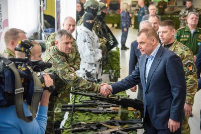 Перед началом торжественной части Глава Марий Эл осмотрел интерактивные выставки, образцы вооружений.