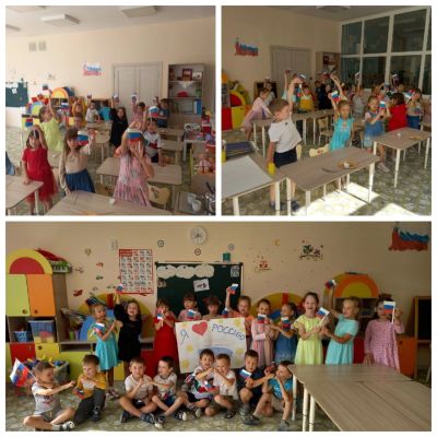 Накануне праздника с детьми в садике проведены беседы, прочитаны книги о символике нашего государства: «Флаг моей страны», «Белый, синий, красный», разучены стихи о Родине, флаге, России.