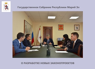 О разработке новых законопроектов и документов, уже подготовленных для внесения на сороковую бюджетную сессию, шла сегодня речь в ходе встречи Председателя Государственного Собрания Анатолия Смирнова с министром – полномочным представителем Главы Республики Марий Эл Татьяной Манджиевой и заместителем Руководителя Администрации Главы Республики Марий Эл, начальником государственно-правового управления Рудольфом Золотаревым.