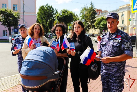В ходе мероприятия представители Росгвардии раздали гостям и жителям Марийской столицы буклеты и флажки, раскрашенные в цвета российского триколора – символа единения, уважения, гордости за наше прошлое, настоящее и будущее, с пожеланиями всем мира, добра и крепкого здоровья.