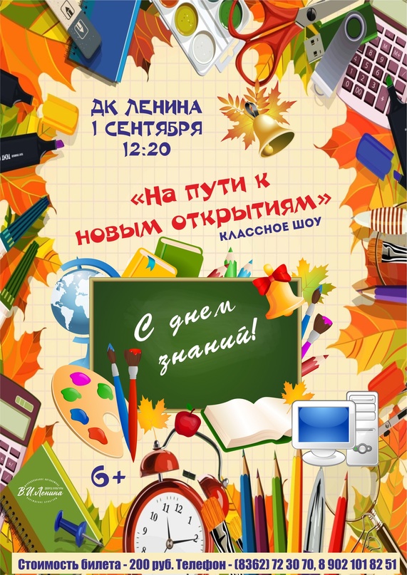 1 сентября в 12.20.ДК им. В.И.Ленина приглашает на Классное Шоу под названием "На пути к новым открытиям" Мы ждем вас, ребята!