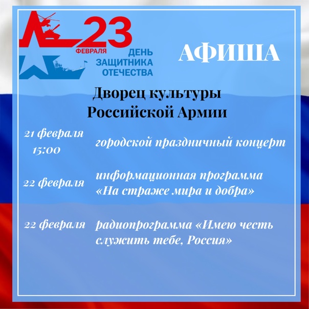 23 февраля наша страна празднует День защитника Отечества. В честь этой даты муниципальные учреждения культуры города Йошкар-Олы запланировали различные культурно-массовые мероприятия.
