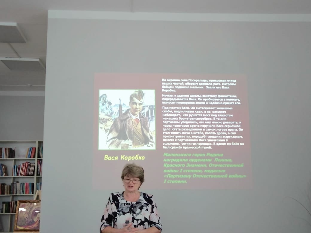 Мероприятие состояло из презентации и фильме о детях, совершивших подвиги во время ВОВ, их наградах и орденах. До войны это были обычные дворовые девчонки и мальчишки, а после войны их имена узнала вся страна и не только. Кроме того, к мероприятию была оформлена книжная выставка. Важно, чтобы эти имена маленьких героев остались в памяти навсегда и их будут чтить и помнить.