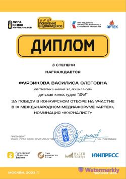 Поздравляем Василису Фурзикову с высокой наградой Международного медиафорума, с 3 местом.