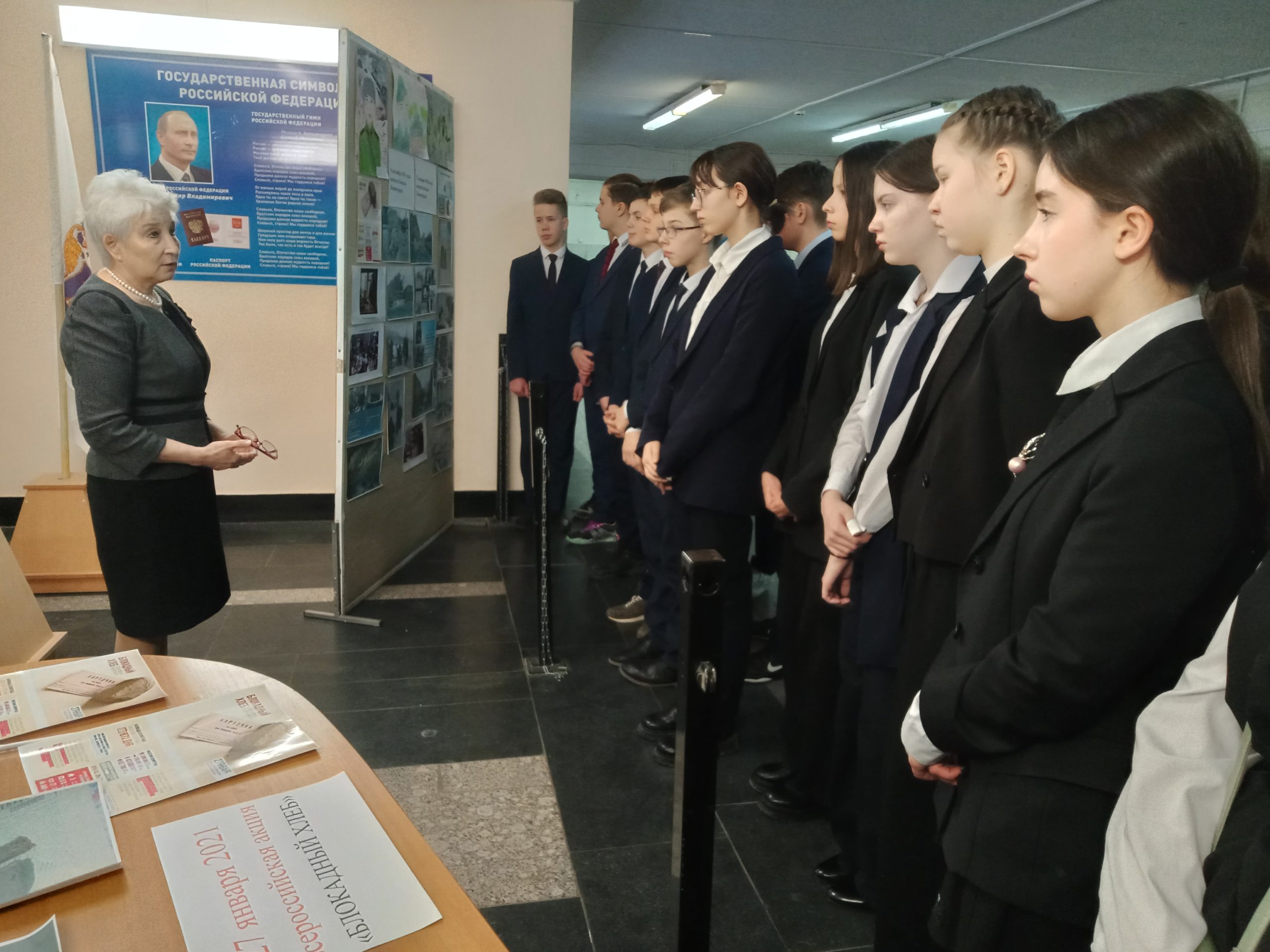 Организатор выставки преподаватель ОБЖ, руководитель юнармейцев лицея Дудар Нина Александровна. Вместе с учащимися они оформили выставку о блокадном Ленинграде. Нина Александровна провела экскурсии для учащихся, на которых ребята получили норму блокадного хлеба.