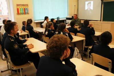 О подвиге Сергея, посмертно награжденного орденом Мужества, о кровавых боях у чеченского села Комсомольское кадетам йошкар-олинской школы № 31 рассказал сотрудник отдела специального назначения, служивший вместе с героем.