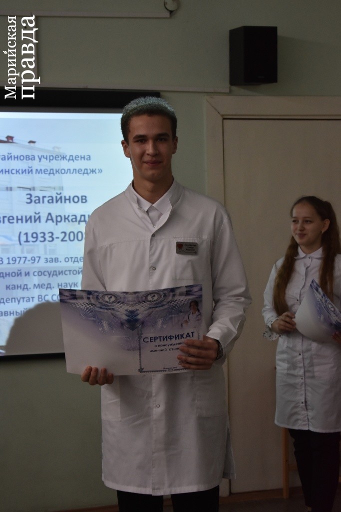 Традиция вручения таких стипендий существует уже 11 лет. Каждая из них носит имя сотрудников, отличившихся на поприще медицины в Марий Эл, и вручается от учреждений здравоохранения и фармации. В этом году медколледж Йошкар-Олы учредил стипендию имени Евгения Аркадьевича Загайнова – заслуженного врача Марий Эл, хирурга, выполнившего за всю свою жизнь порядка 10 тысяч операций. Когда пришло время торжественных речей, перед студентами выступил его сын Владимир, рассказав, что отец искренне верил: «рукоделия» врача мало, нужно всегда оставаться хорошим человеком и тянуться к знаниям – что и демонстрирует юная братия будущих медиков, получая именные стипендии. Он же назвал Марий Эл «родину фанатов медицины» и пожелал юношам и девушкам любить свою профессию – ведь благодарности пациентов и хорошие отзывы от коллег не заслужить ничем другим, как достойной работой.