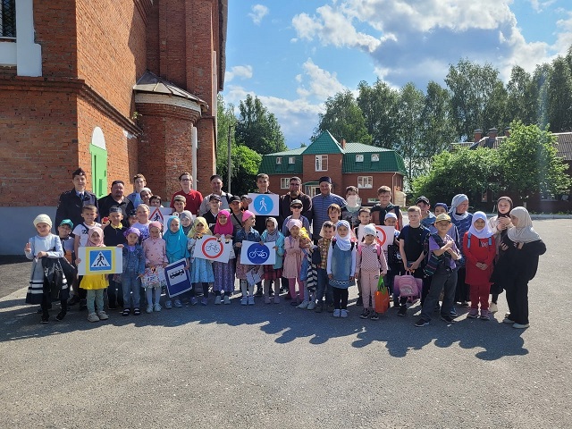 Для детей, посещающих образовательную площадку при Соборной мечети г. Йошкар-Олы, сотрудники ГИБДД провели занятие по безопасному поведению на дороге. В игровой форме ребята вспомнили основные правила поведения во дворе и на улице и повторили правила дорожного движения для велосипедистов и пешеходов. Дети собирали пазлы по дорожным знакам, а также разгадывали кроссворды на знание ПДД.