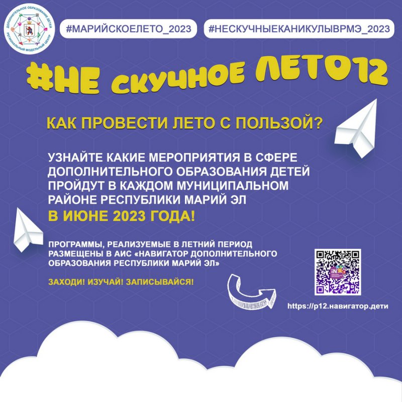 Запускается новая рубрика #НЕскучноеЛето12 , в которой будет транслироваться информация о реализуемых программах, проведении мероприятий и предстоящих событиях в сфере дополнительного образования детей по всей республике Марий Эл!