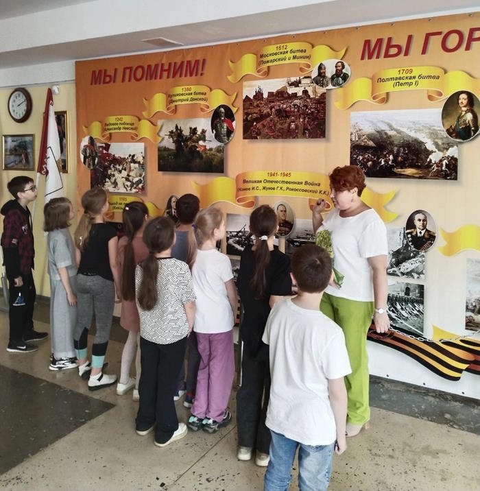 К празднику День России в школьном лагере " Планета детства" прошло патриотическое мероприятие "Помним.Благодарим. Гордимся." Ребята побывали в школьном зале боевой славы познакомились с героическими подвигами наших земляков, вспомнили великие битвы и великих полководцев, которые принесли славу нашей стране.