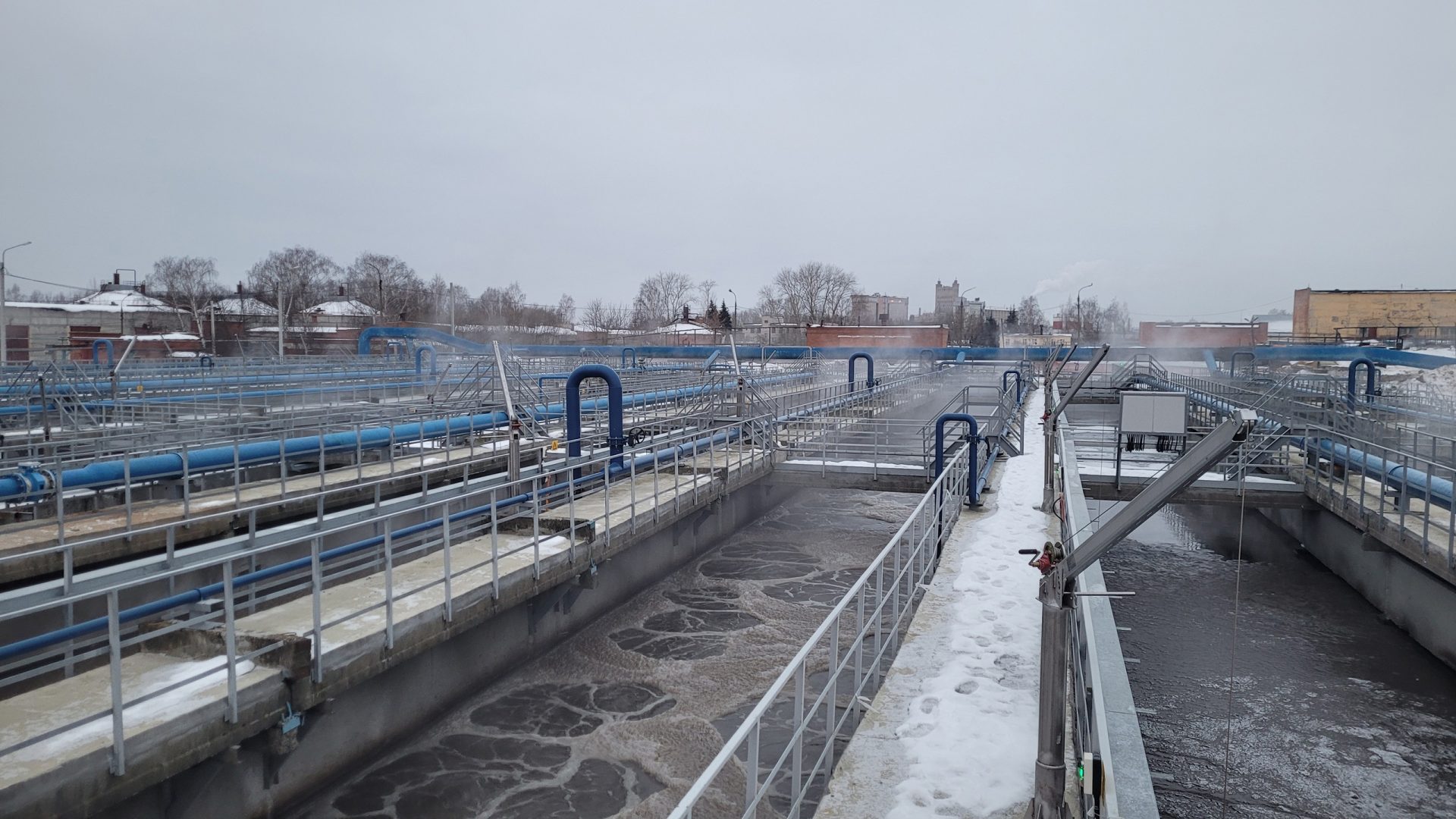 В настоящее время на объекте коммунальной инфраструктуры идет обновление 4-х коридорных аэротенков и 40-метровых вторичных отстойников, а также монтаж илососа.