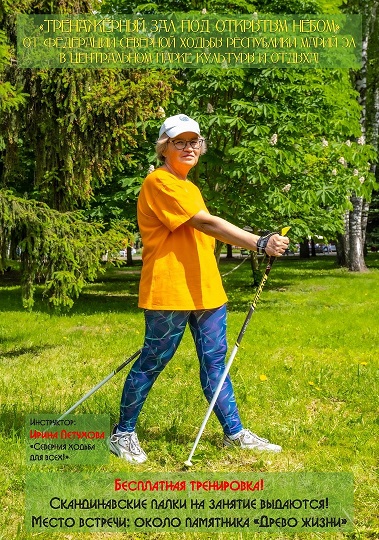 Сегодня, 16 июля, в Йошкар-Оле состоится бесплатная тренировка проекта «Тренажерный зал под открытым небом» от Федерации северной ходьбы Марий Эл