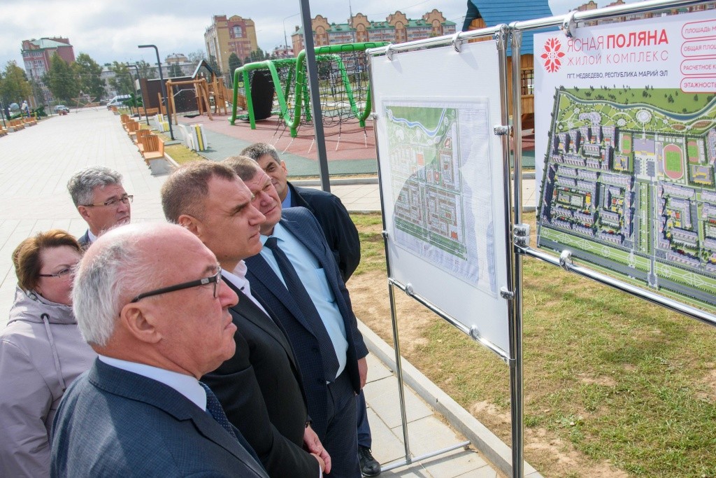 Во время рабочей поездки в Медведевский район Глава Марий Эл Юрий Зайцев оценил ход работ и дал высокую оценку новой общественной территории.