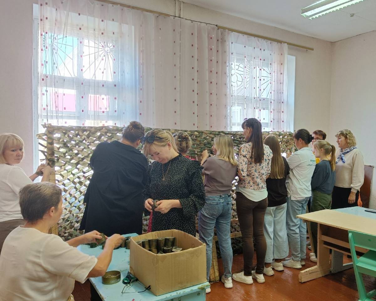 Маскировочные сети партийцы передадут на фронт с ближайшим гуманитарным конвоем.