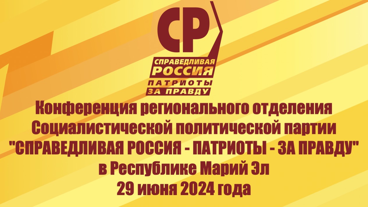 Сегодня, 29 июня 2024 года, в преддверии предстоящих Выборов 2024 г. состоялась Конференция регионального отделения Партии СПРАВЕДЛИВАЯ РОССИЯ-ЗА ПРАВДУ в Республике Марий Эл.