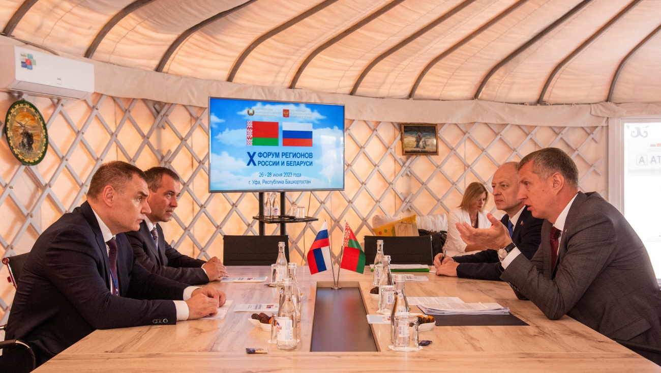 Сегодня глава Марий Эл находится с рабочей поездкой в Уфе на X форуме регионов России и Беларуси. В рамках этого мероприятия он встретился с Чрезвычайным и Полномочным Послом Республики Беларусь в РФ Дмитрием Крутым. Темой встречи стало развитие торгово-экономических связей.