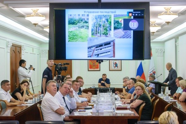 Глава Марий Эл Юрий Зайцев провел очередное заседание штаба по результатам работ по ликвидации последствий ураганного ветра и ливня, обрушившихся на населенные пункты региона 29 июля.