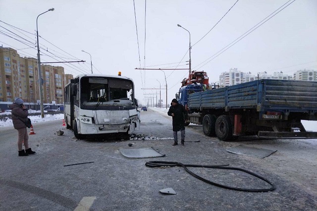 В четверг около 11 часов 05 минут на нерегулируемом перекрестке на 7 километре автодороги «Подъезд к городу Йошкар-Оле» (Козьмодемьянский тракт) и улицы Жилина 57-летний водитель, управляя автомашиной КАМАЗ, по предварительным данным , при выезде с второстепенной дороги не уступил преимущество в движении автобусу, который ехал по главной дороге.