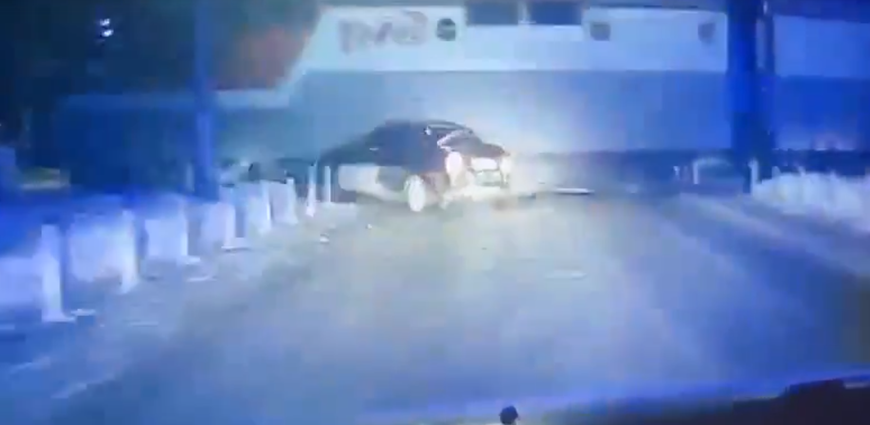 Опубликовано видео, как во втором по величине городе Марий Эл – Волжске легковушка протаранила движущийся поезд.
