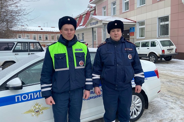 В дежурную часть отдела полиции поступило сообщение, что на 41 километре автодороги Красный Мост – Килемары – Шаранга в кювет съехала и опрокинулась иномарка. В салоне автомобиля находится семейная пара с грудным ребёнком. Самостоятельно выбраться из машины они не смогли. На место происшествия выехал патрульный наряд ДПС (Ильфар Якупов и Максим Фирсов). Сотрудники Госавтоинспекции помогли родителям с младенцем выбраться из увязшей в снегу машины и посадили в патрульный автомобиль погреться, предложив горячий чай.