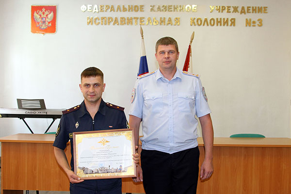 За содействие правоохранительным органам сотрудник ИК-3 УФСИН России по Республике Марий Эл майор внутренней службы Дмитрий Столяров был награжден Почетной грамотой республиканского МВД. Вручая награду, начальник Медведевского отдела полиции Герман Бердников поблагодарил офицера УИС за активную гражданскую позицию и помощь в задержании преступника.