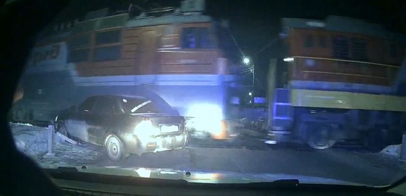 В Марий Эл 26-летний пьяный водитель, уходя от погони, столкнулся с поездом (видео)