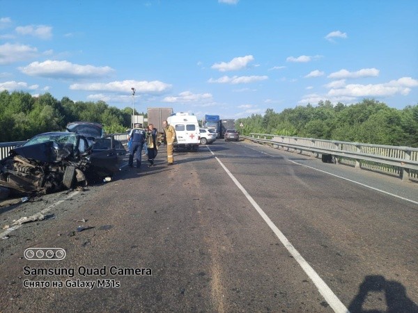 Сегодня около 16:20 на 37-ом км автодороги «Вятка» водитель грузового автомобиля "КАМАЗ" на мосту, в нарушение ПДД, выехал на полосу встречного движения, где совершил столкновение сразу с тремя легковыми автомобилями.