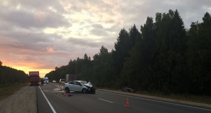 8 сентября около 5 часов утра на 29 километре автодороги Вятка Звениговского района, 22-летний водитель автомашины Hyundai, по предварительным данным, выехал на полосу предназначенную для встречного движения, где совершил столкновение со встречной автомашиной Kia под управлением 63-летнего водителя.