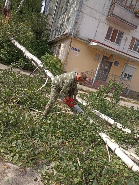 В Йошкар-Оле коммунальщики расчищают улицы от упавших во время урагана деревьев
