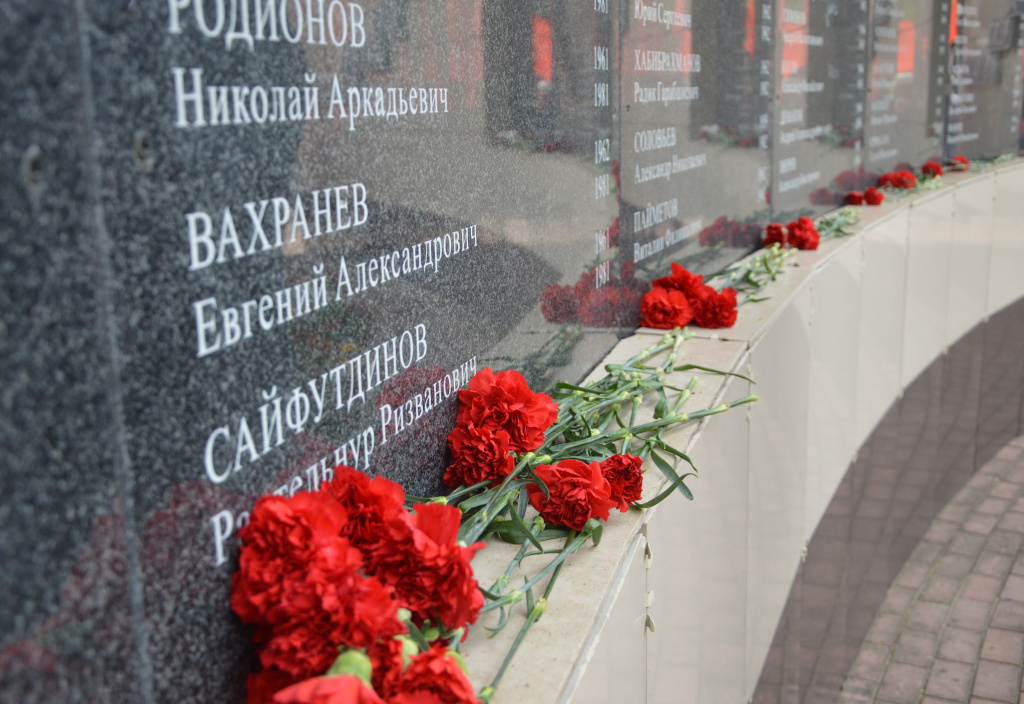 Участники мероприятия почтили минутой молчания память бойцов, отдавших свои жизни, выполняя воинской долг, и возложили цветы к стеле.