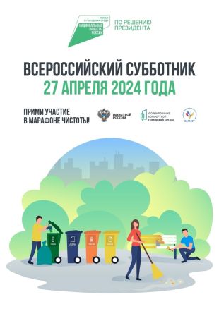 27 апреля 2024 года состоится Всероссийский субботник!!!