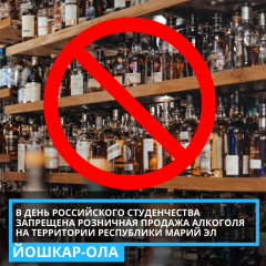 Администрация города Йошкар-Олы напоминает, что Законом Республики Марий Эл установлены дополнительные ограничения розничной продажи алкогольной продукции Законом определено, что розничная продажа алкогольной продукции запрещена с 00: 00 до 24.00 часов 25 января 2022 г. (День российского студенчества), за исключением розничной продажи алкогольной продукции при оказании услуг общественного питания. Ответственность за данное правонарушение предусмотрена частью 3 статьи 14.16 КоАП РФ. В соответствии с данной нормой нарушение особых требований и правил розничной продажи алкогольной и спиртосодержащей продукции, за исключением случаев, предусмотренных частью 2 статьи 14.17.1 КоАП РФ, влечет наложение административного штрафа: на должностных лиц в размере от двадцати тысяч до сорока тысяч рублей с конфискацией алкогольной и спиртосодержащей продукции или без таковой на юридических лиц - от ста тысяч до трехсот тысяч рублей с конфискацией алкогольной и спиртосодержащей продукции или без таковой.