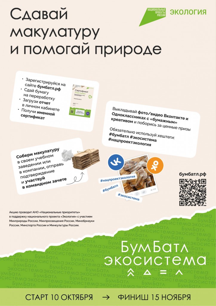 Четвертый сезон акции «БумБатл» стартовал 10 октября. В этом году масштабный экологический проект организован АНО «Национальные приоритеты» совместно с Всероссийским экологическим общественным движением «Экосистема».