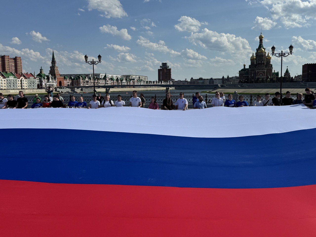 В преддверии празднования Дня России молодогвардейцы Республики Марий Эл организовали патриотический флешмоб вместе со студентами Волгатеха, Марийского государственного университета и Столичного бизнес-колледжа. Участники мероприятия под исполнение гимна России развернули Государственный флаг Российской Федерации!