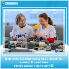 «Все обращения от военнослужащих и их близких оперативно рассматриваются. Действуют более 50 мер социальной поддержки. Но огромная заслуга в работе по оказанию помощи нашим героям принадлежит фонду «За Марий Эл». Считаю, что первая годовщина со дня его создания объединяет всех, кто участвует в сборе, погрузке и доставке гуманитарных конвоев. Это представители бизнеса, профсоюзные и общественные организации, федеральные структуры, простые жители», – сказал Глава Марий Эл.