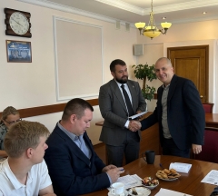 В завершении мэр Евгений Маслов передал депутату Городского собрания Антону Волкову средства, которые были собраны сотрудниками мэрии в поддержку земляков, находящихся в зоне проведения СВО. Антон Михайлович активно участвует в сборе и отправке гуманитарных грузов и в составе гуммиссии выезжал в новые регионы России.