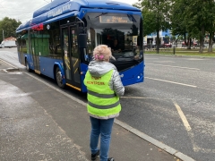 По маршрутам уже работают контролеры, их легко заметить по сигнальным жилеткам и надписи "отдел контроля". Они заходят на остановке в транспортное средство, проверяют билеты у пассажиров, которые оплачивают проезд наличными, а с помощью валидаторов - списание средств с банковской карты.