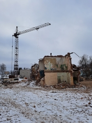 На месте снесенного аварийного жилья планируется строительство современных многоквартирных многоэтажных жилых домов. Работы уже ведутся.