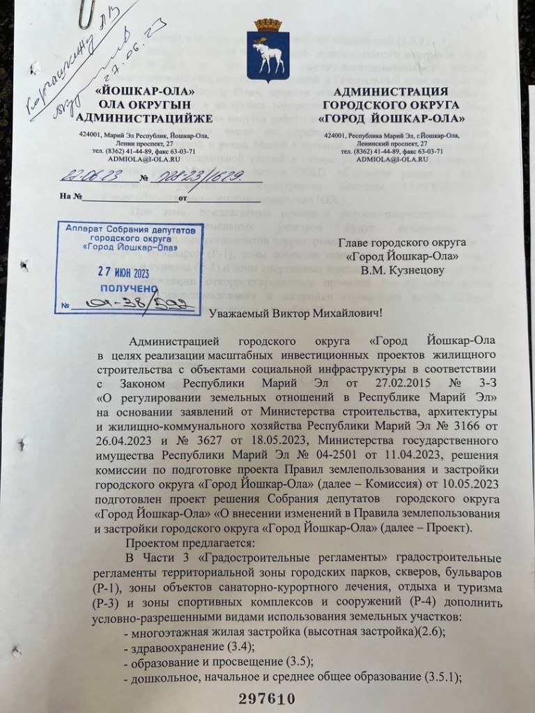 Собравшимся показали документы и графические материалы, подтверждающие отсутствие намерений каким-либо образом застраивать земли заливных лугов. Парковая зона возле Сосновой рощи должна сохранить свой статус при актуализации Генерального плана Йошкар-Олы.