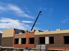 В настоящее время бригада каменщиков занимается кладкой второго этажа, к концу сентября планируется завершить возведение стен 3 и 4 этажей. Осенью начнутся работы по остеклению, прокладке инженерных коммуникаций и отделочные работы.