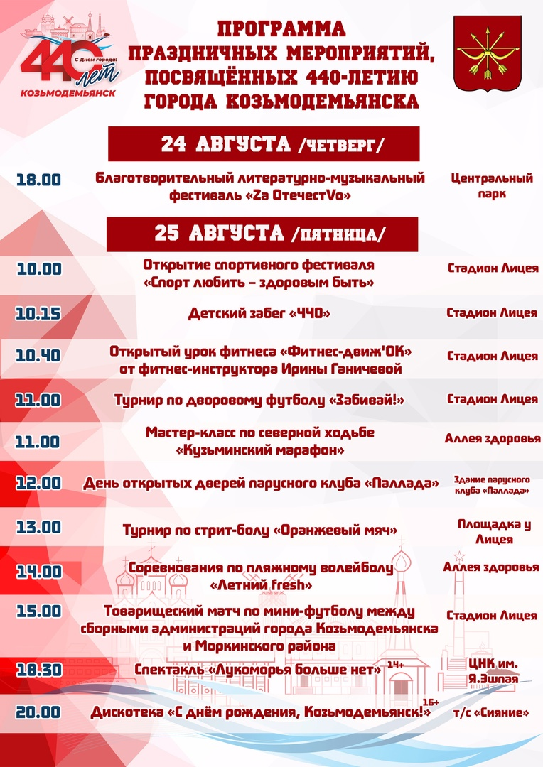 Опубликована афиша празднования Дня город Козьмодемьянска