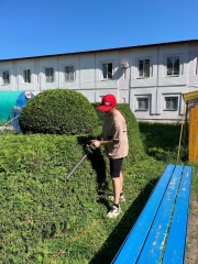 Нельзя не отметить, как сотрудники Центрального парка культуры следят за благоустройством своей территории. Озеленители проводят формовочные обрезки деревьев. Регулярная стрижка кустарников способствует здоровому росту и развитию растений, предотвращает заболевания и повышает устойчивость к вредителям, а аккуратная и красивая стрижка придает ухоженный и эстетичный вид.