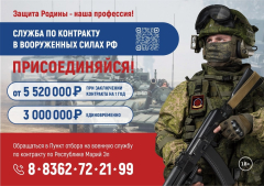 Стань профессионалом и защитником своей страны! Единовременая выплата для жителей Марий Эл, принявших решение о прохождении службы по контракту,